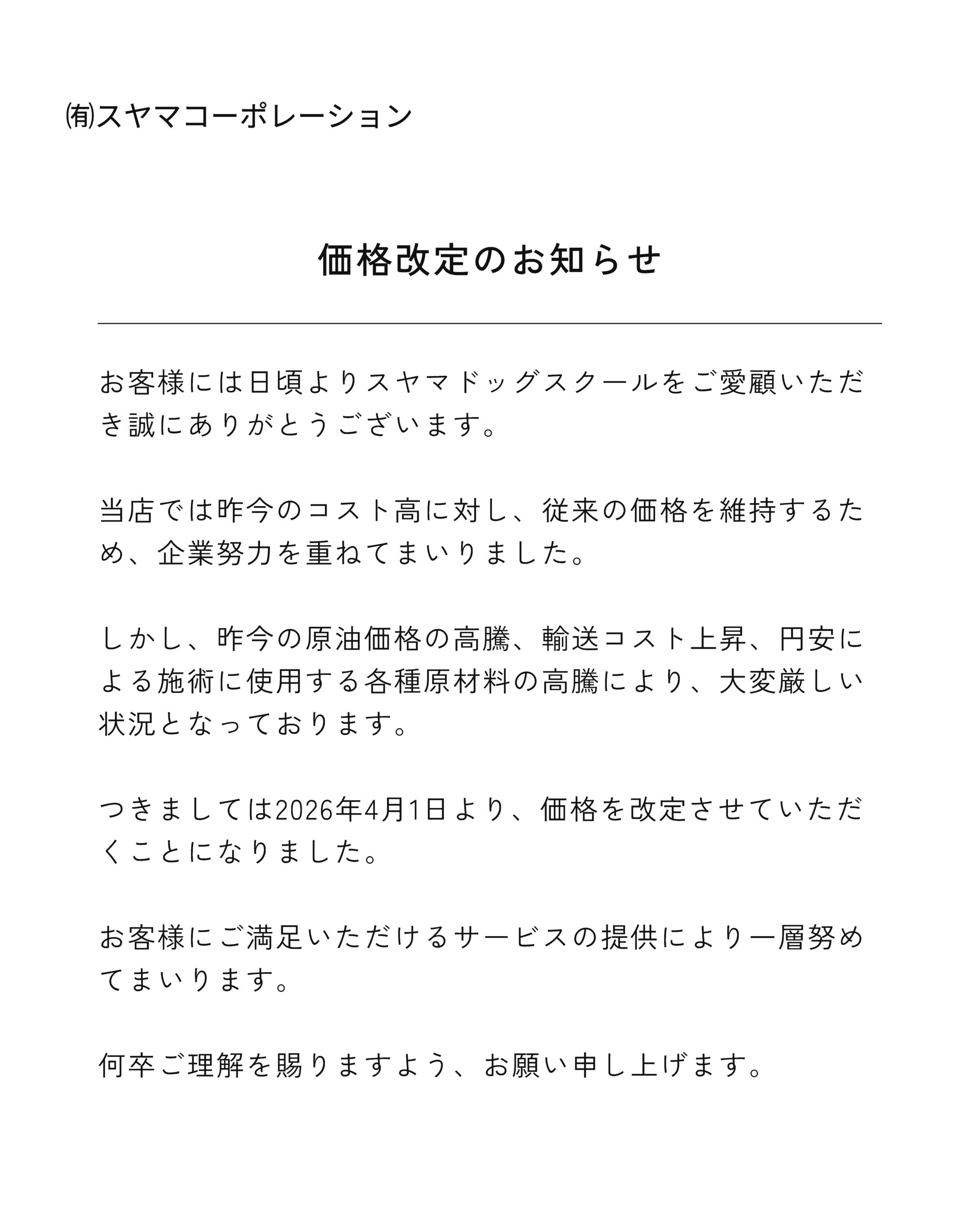 価格改定のお知らせ